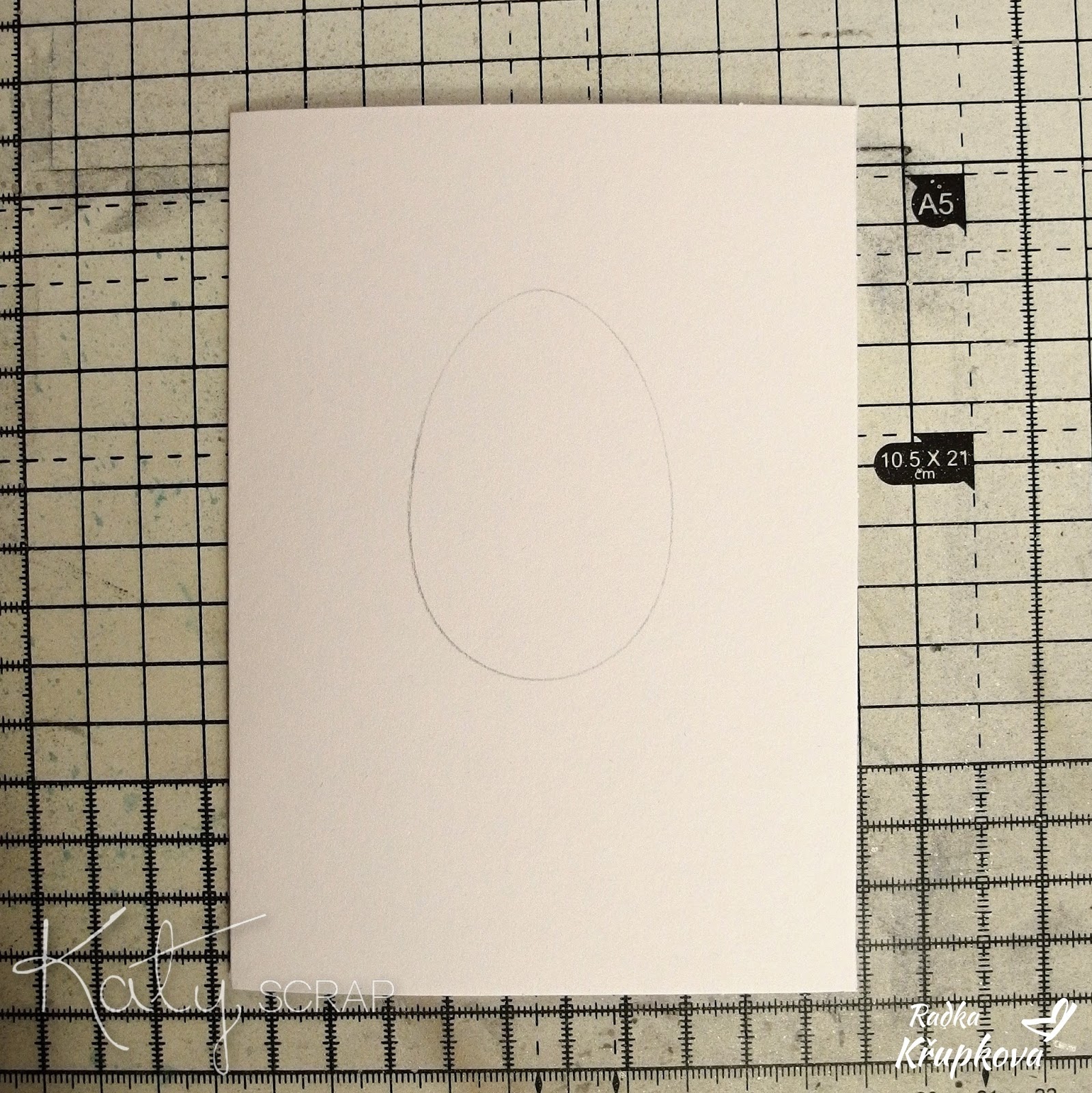 Uřízla jsem si zrcadlový papír s výřezem vajíčka tak, jak přijde na základ přání, ať si můžu obkreslit místo, ve kterém bude otvor: